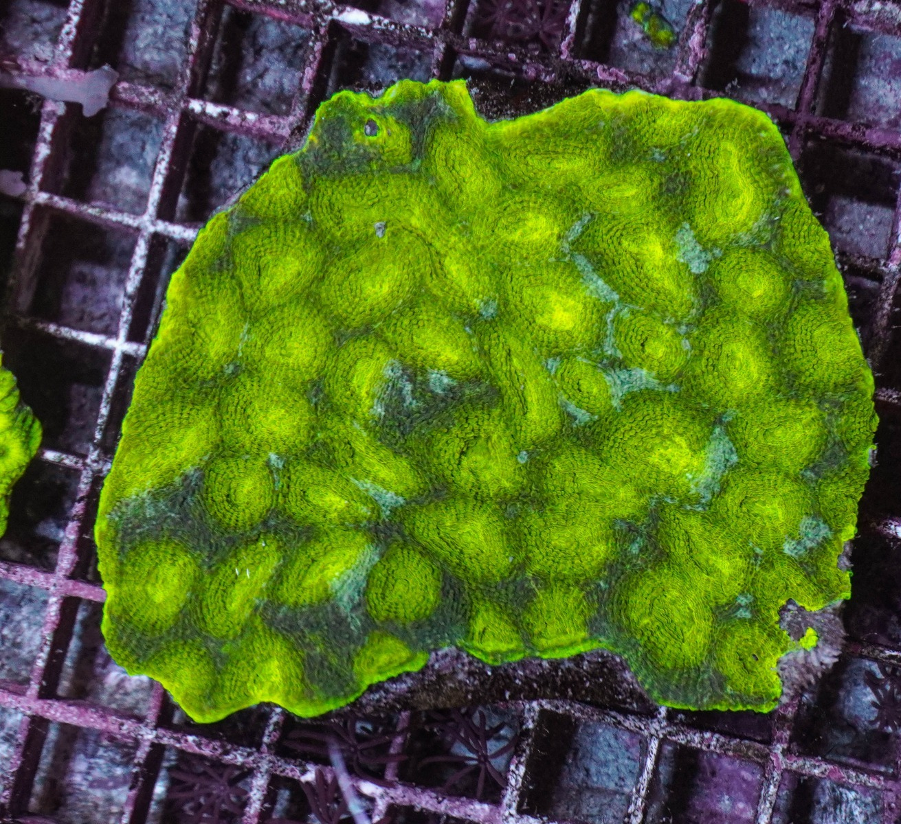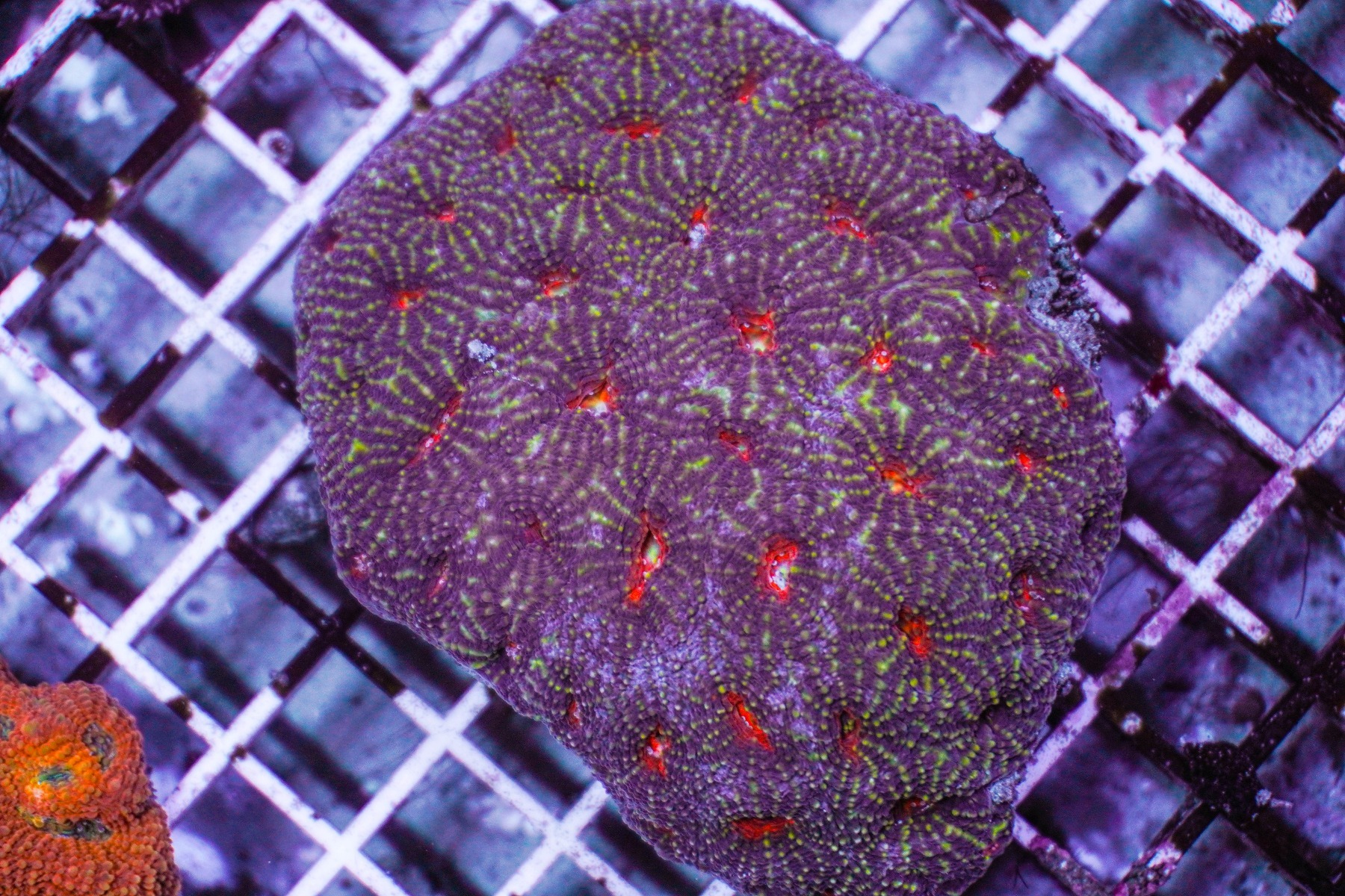 Acanthastrea echinata is a striking LPS coral species distinguished by its bright colors, complex patterns, and compact growth habit. Our Premium selection features specimens with exceptional coloration, ranging from fluorescent green to orange, blue, or purple – a real eye-catcher in any reef aquarium.