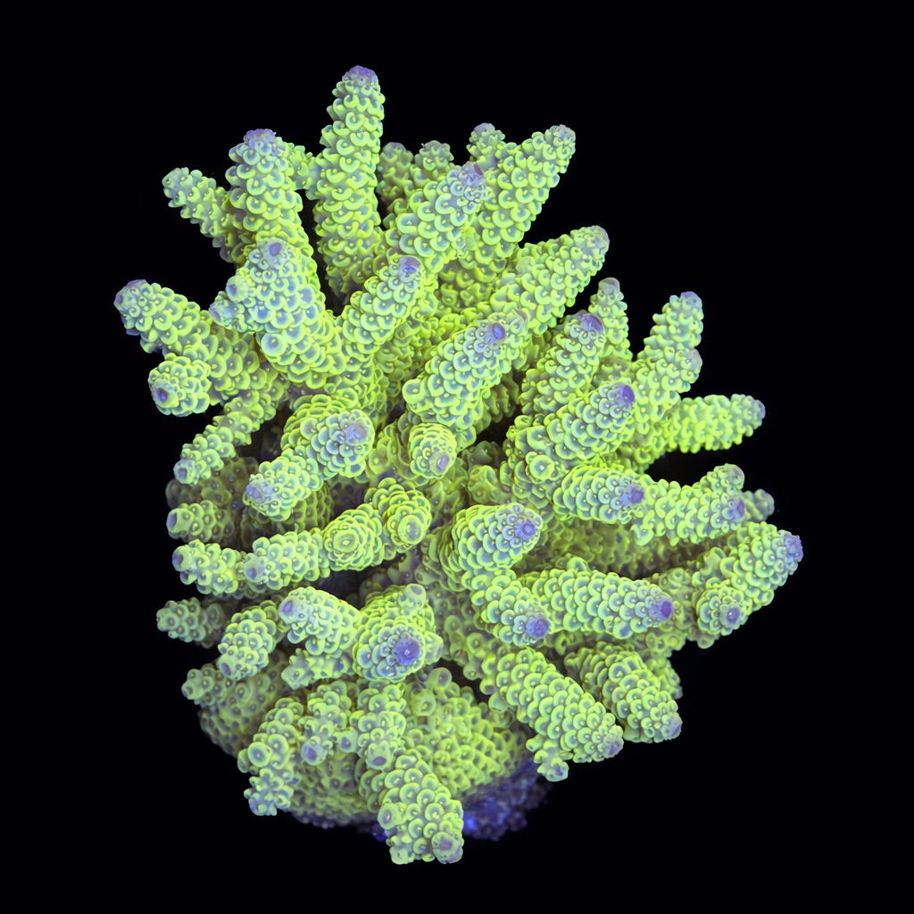 WYSIWYG1754992919086 Unique WYSIWYG Acropora Ultra Green coral. One-of-a-kind, exactly what you see! Looking for a real eye-catcher for your reef tank? This unique WYSIWYG coral is an absolute must-have for every serious reefkeeper. No stock photos or surprises – what you see is exactly what you get. And what you get is spectacular.