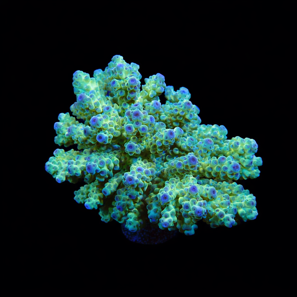 WYSIWYG1754992919086 Unique WYSIWYG Acropora Ultra Green coral. One-of-a-kind, exactly what you see! Looking for a real eye-catcher for your reef tank? This unique WYSIWYG coral is an absolute must-have for every serious reefkeeper. No stock photos or surprises – what you see is exactly what you get. And what you get is spectacular.