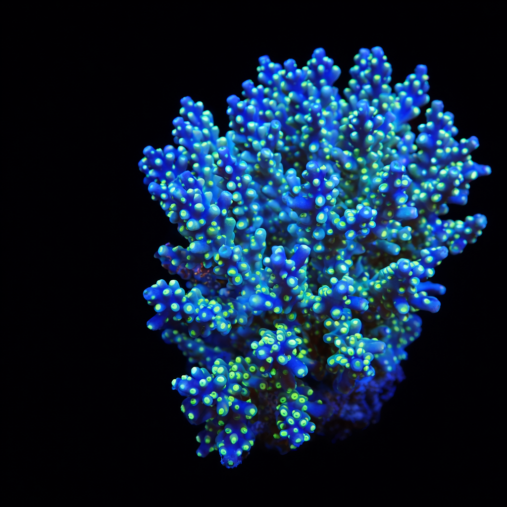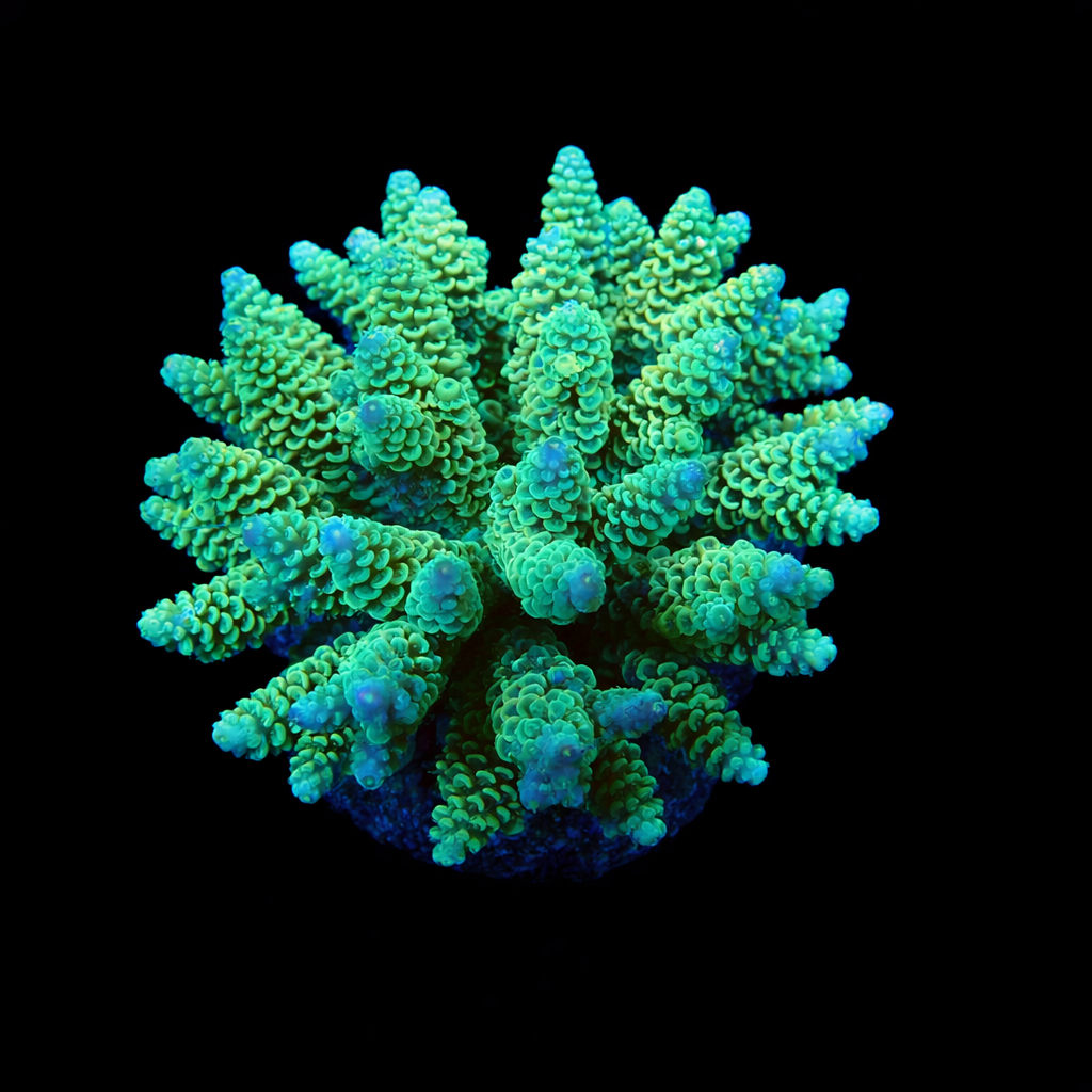 WYSIWYG1754992919086 Unique WYSIWYG Acropora Ultra Green coral. One-of-a-kind, exactly what you see! Looking for a real eye-catcher for your reef tank? This unique WYSIWYG coral is an absolute must-have for every serious reefkeeper. No stock photos or surprises – what you see is exactly what you get. And what you get is spectacular.