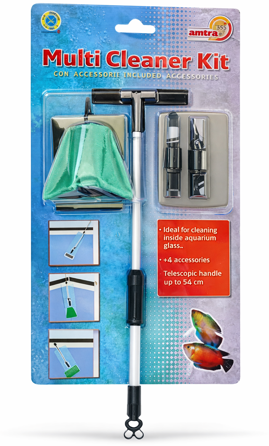 This practical aquarium cleaning set is designed for easy cleaning and maintenance of aquarium glass. With the various included accessories, you can remove algae, clean glass walls, and clean hard-to-reach corners.