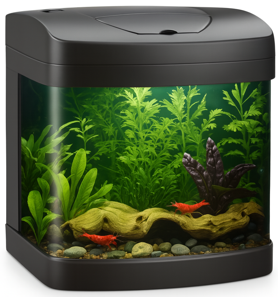 - LED lighting – Bright, energy-efficient and ideal for plant growth and natural color reproduction of fish and shrimp.