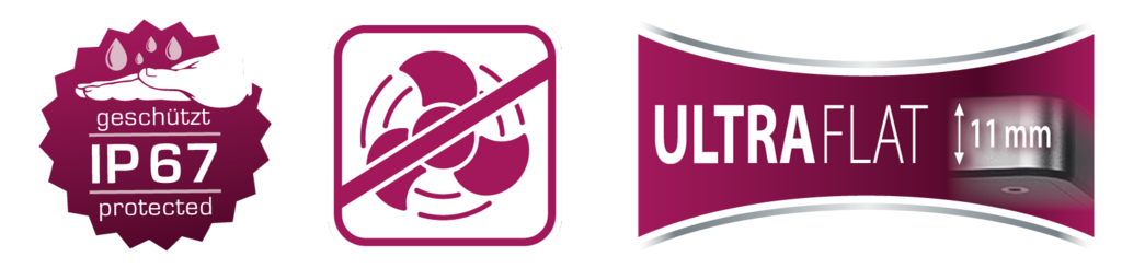 The anodized aluminum housing provides effective passive cooling without fans. This makes the lamp completely silent and guarantees a long lifespan for the LEDs.