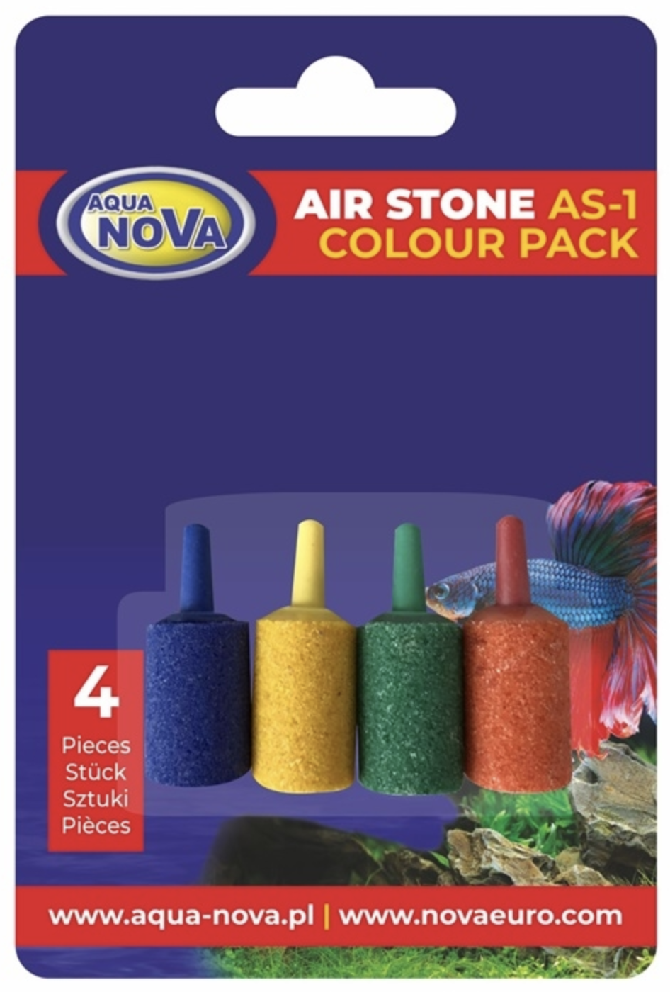 Aqua Nova Air Stone AS-1 Colour Pack The Aqua Nova AS-1 Colour Pack contains high-porosity air stones for efficient aquarium aeration. Their fine structure creates small air bubbles...