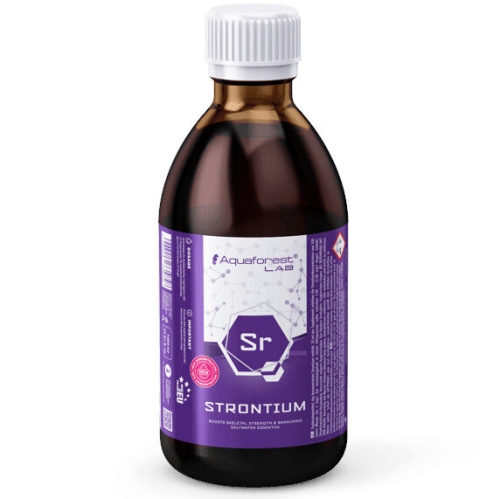 Aquaforest Strontium Lab is a concentrated supplement specifically developed to maintain strontium levels in reef aquariums. Strontium is an essential trace element that plays an important role in coral skeleton formation.