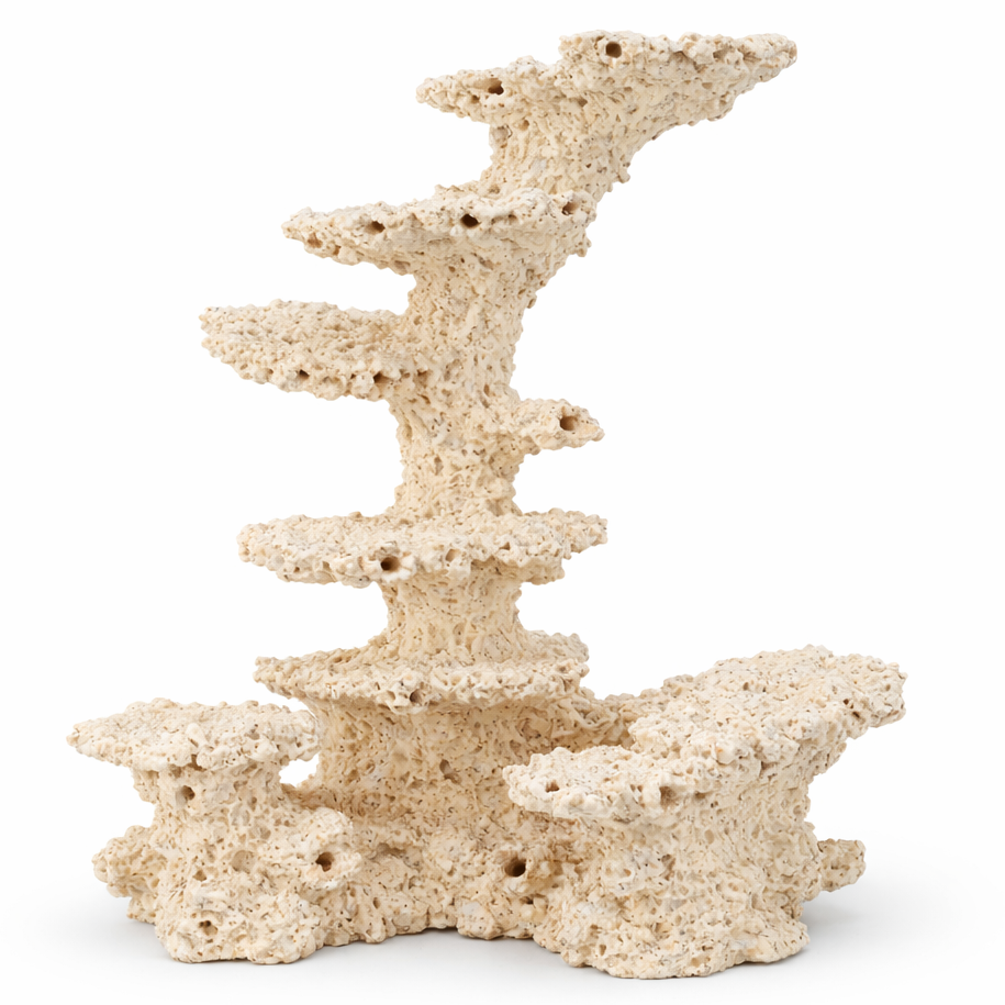 The AP AquaKeramik Reef Column L (right) is a high-quality ceramic reef structure that allows you to create an open and natural aquascape in your marine aquarium. Its clever shape and multiple platforms provide ample space for corals.