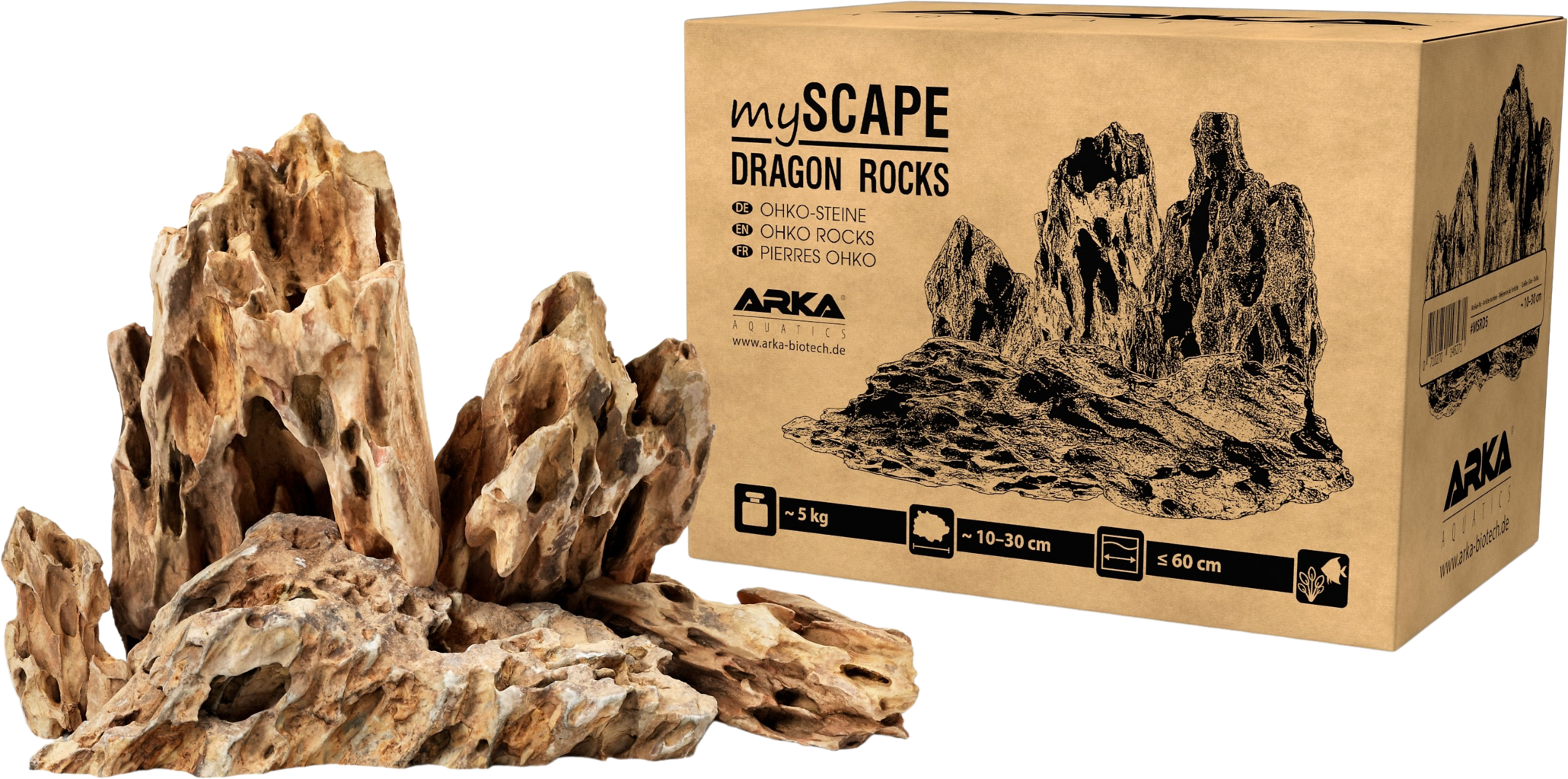 ARKA Aquatics myScape-Rocks Dragon are made of a natural clay stone, which is perfect for spectacular and unique aquascapes, such as B. Iwagumis, in any freshwater aquarium and structures in any ...