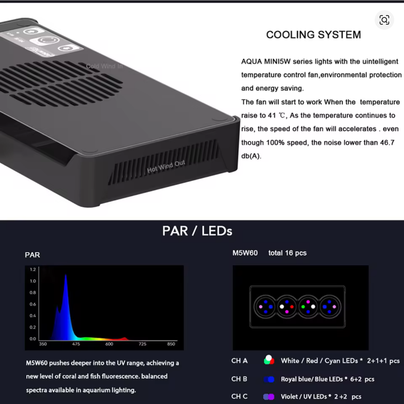 | Spectrum | Full (UV, blue, white, red, green) |