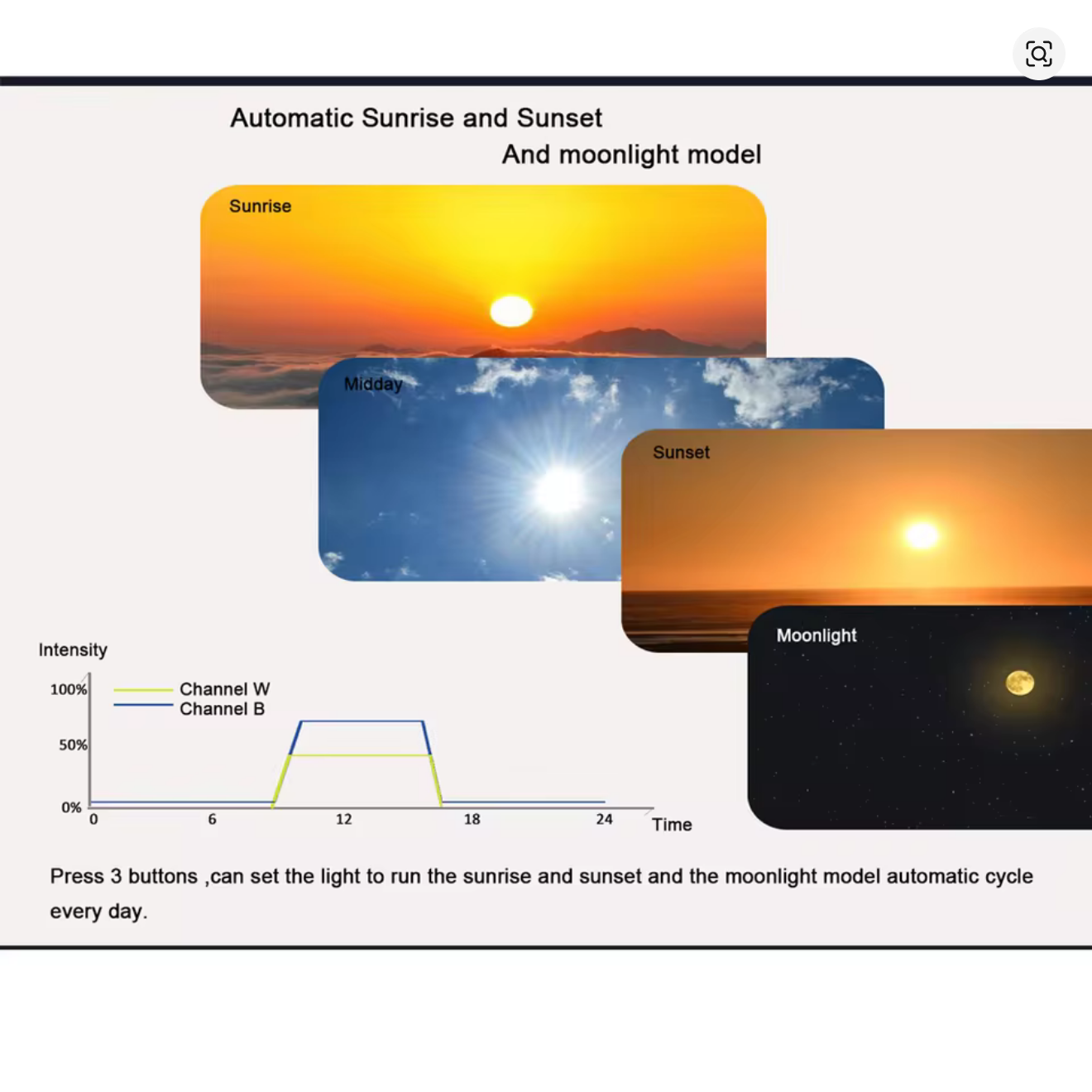 - Set the desired light schedule, intensity and color for your aquarium