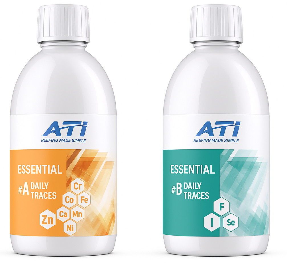 ATI® Essential Daily Traces #A and #B were developed as a supplementary and precisely balanced trace element supply for modern reef aquariums. While ATI® Essentials SPS and Essentials Mixed Reef already provide a balanced base, Daily Traces go a step further. They are specifically designed for aquariums with increased trace element requirements, such as systems with high coral density, an active algae refugium, or the use of phosphate absorbers, zeolite, or activated carbon.