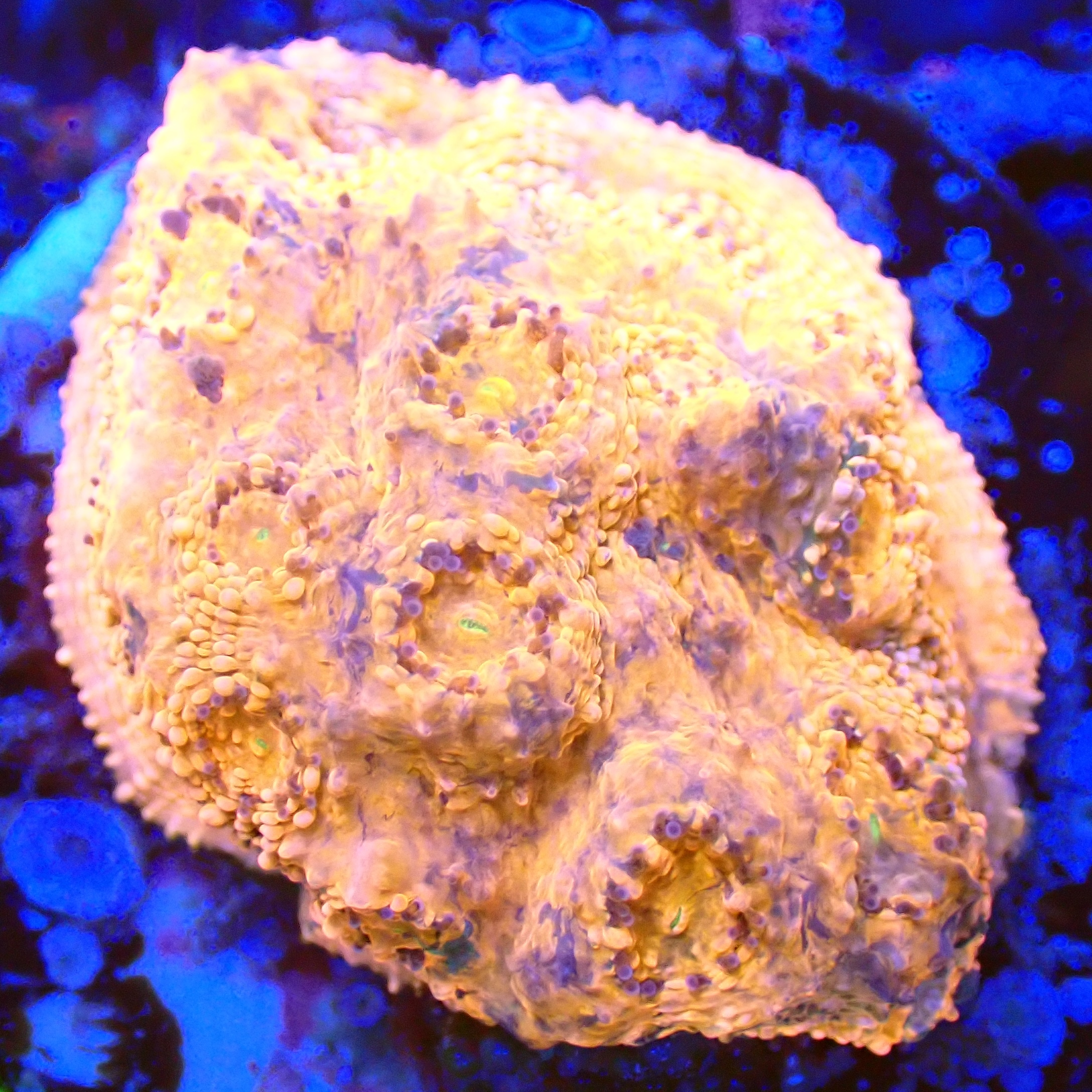 WYSIWYG1754993657079 Unique WYSIWYG Yellow Submarine Favia coral. One-of-a-kind, exactly what you see! Looking for a real eye-catcher for your reef tank? This unique WYSIWYG coral is an absolute must-have for every serious reefkeeper. No stock photos or surprises – what you see is exactly what you get. And what you get is spectacular.