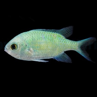 The Chromis viridis is a popular saltwater fish, instantly noticeable for its vibrant blue-green color and peaceful disposition. This graceful schooling fish is native to the tropical waters of the Indo-Pacific region, where it swims in large groups above coral reefs.