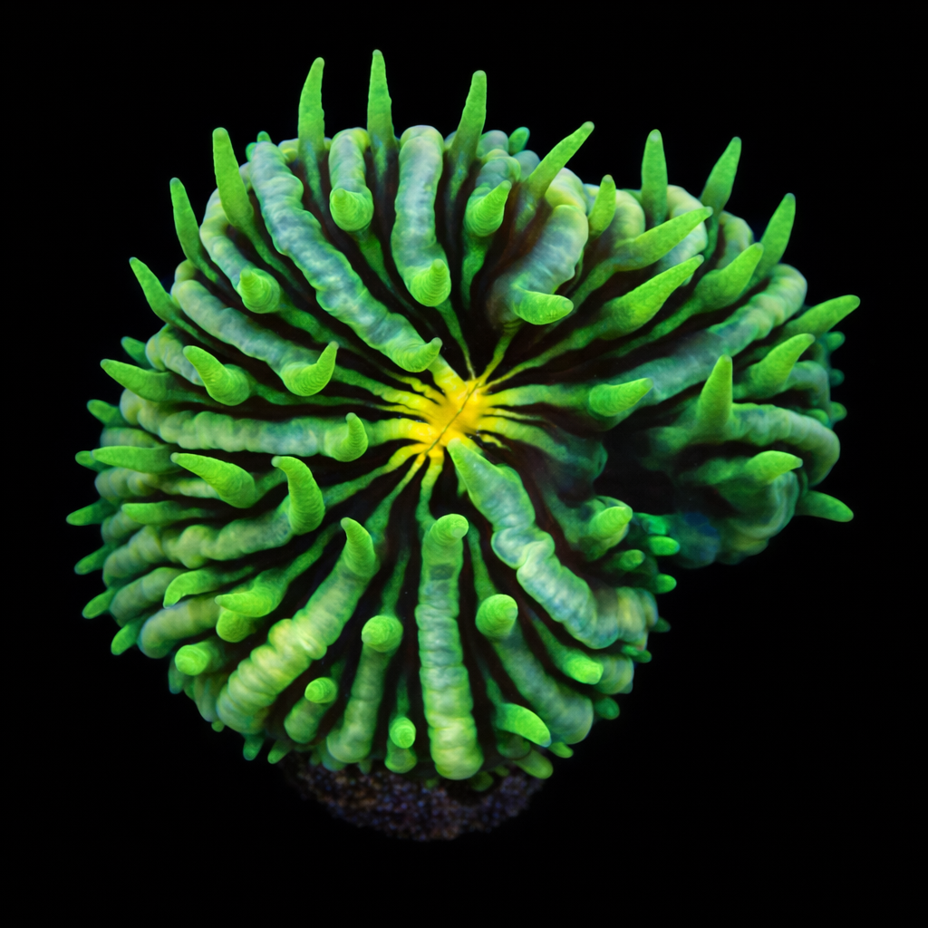 WYSIWYG1757096750662 Unique WYSIWYG Catalaphyllia Jardinei Ultra Green Blue Tips coral. One-of-a-kind, exactly what you see! Looking for a real eye-catcher for your reef tank? This unique WYSIWYG coral is an absolute must-have for every serious reefkeeper. No stock photos or surprises – what you see is exactly what you get. And what you get is spectacular.