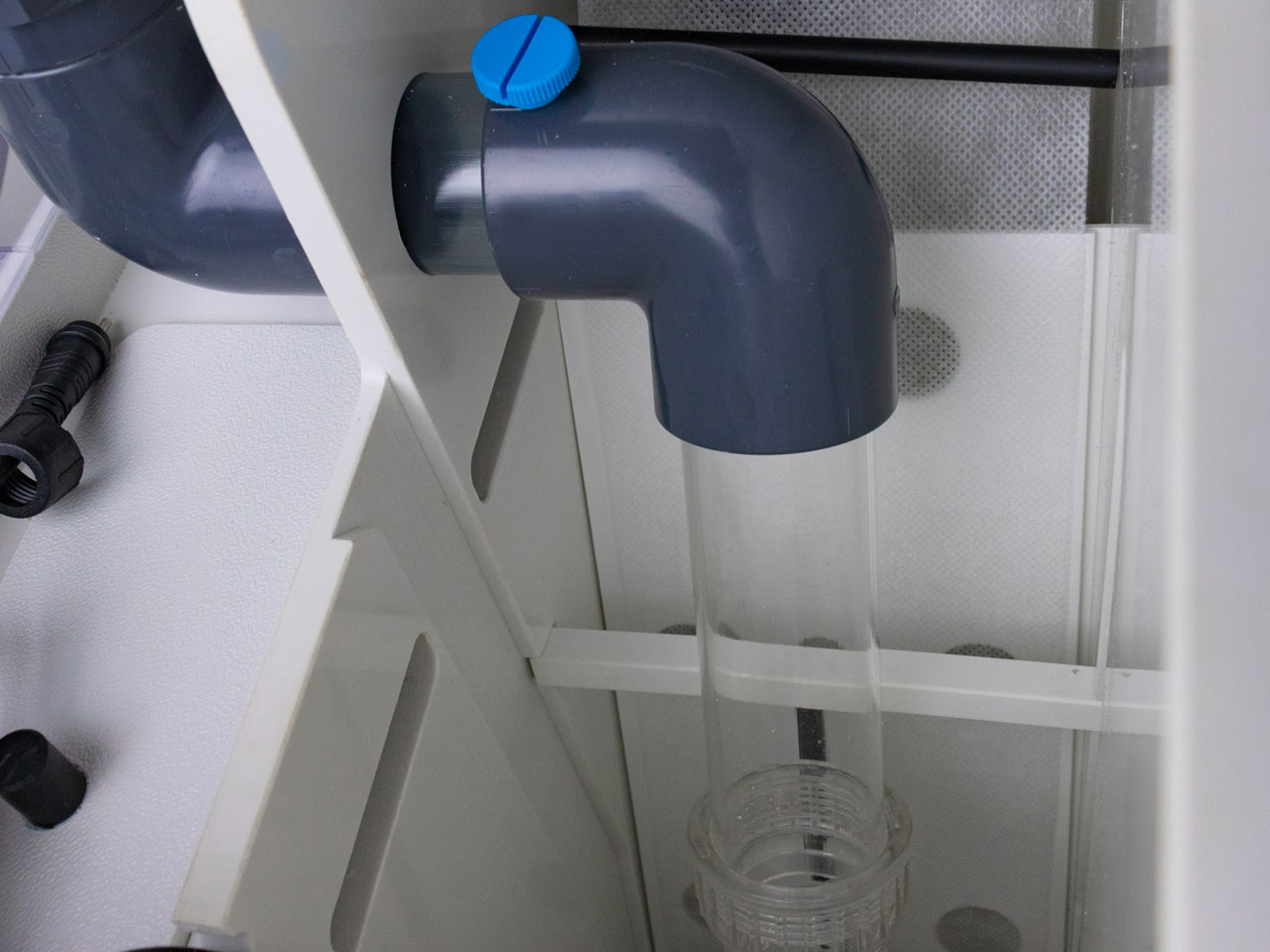 Thanks to its tightly integrated components, the Marine BoX VF 115+ is exceptionally space-saving and ready for immediate use. The internal structure follows a logical water flow , starting with coarse filtration and disinfection, followed by fine filtration, and ending with biological filtration. This guarantees maximum filter efficiency and a stable aquarium ecosystem.