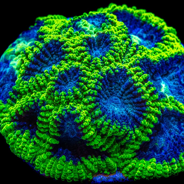 - Color range : Most beautiful “midnight glow” under blue/actinic LED (14–20K).
