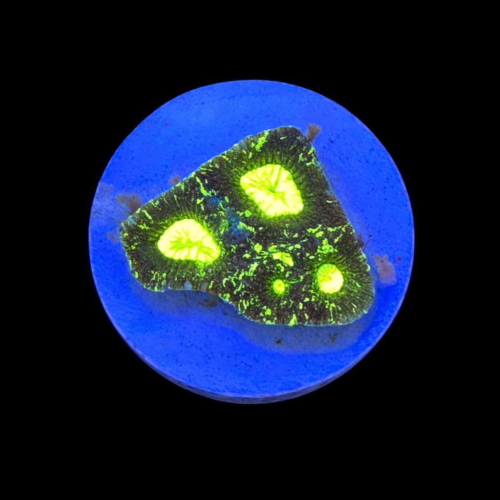 Unique WYSIWYG Favia Toxic Green Grafted Coral. One-of-a-kind, exactly what you see! Looking for a real eye-catcher for your reef tank? This unique WYSIWYG coral is an absolute must-have for every serious reefkeeper. No stock photos or surprises – what you see is exactly what you get. And what you get is spectacular.