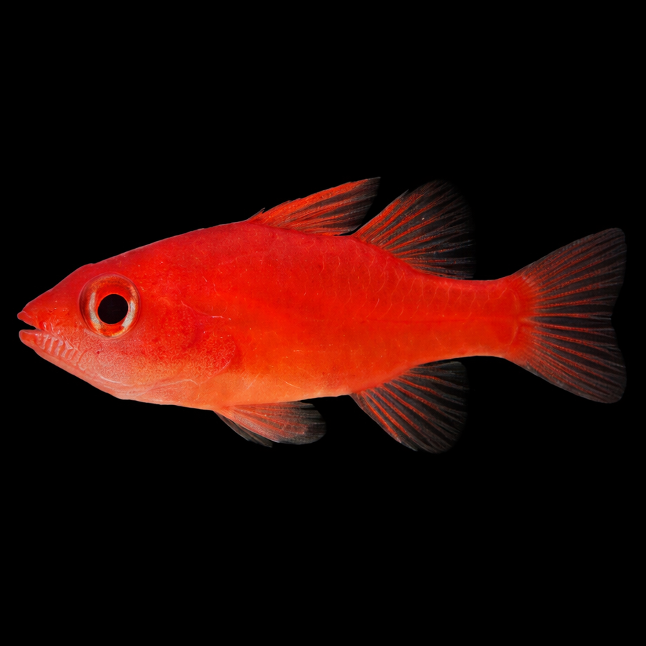 The Fowleria flammae , also known as the Flame Cardinalfish, is a striking and rare addition to the marine aquarium. This colorful fish originates from the coral reefs of the Indo-Pacific region and is known for its bright red to orange color with subtle markings. Its peaceful nature and small size make the Fowleria flammae ideal for both novice and experienced marine aquarium keepers. This species thrives in a well-planted aquarium with ample hiding places among the live rock. With its sociable nature and unique appearance, this fish is a valuable addition to aquarium enthusiasts looking to enrich their aquarium with a unique and relatively unknown species. Choose the Fowleria flammae if you're looking for a healthy, active, and beautiful fish that will bring your marine aquarium to life.