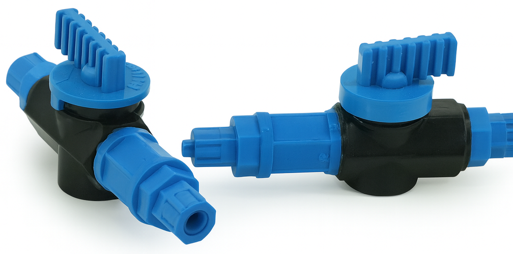 - Connect the ball valve set to the desired hose (6 or 8 mm) within your aquarium installation.