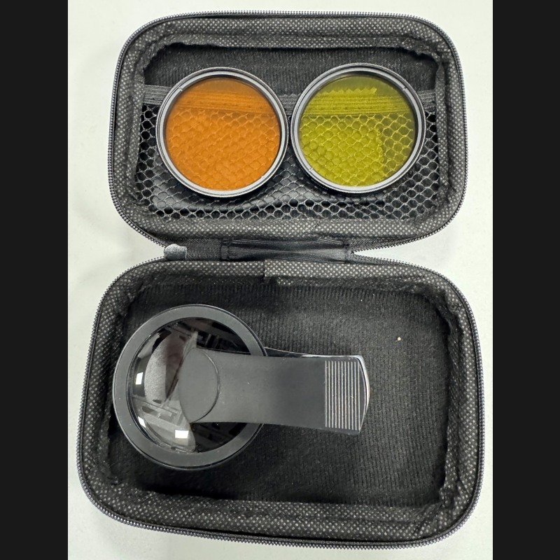 - 1 macro lens 10x (close-up, use in combination with colored lenses possible)