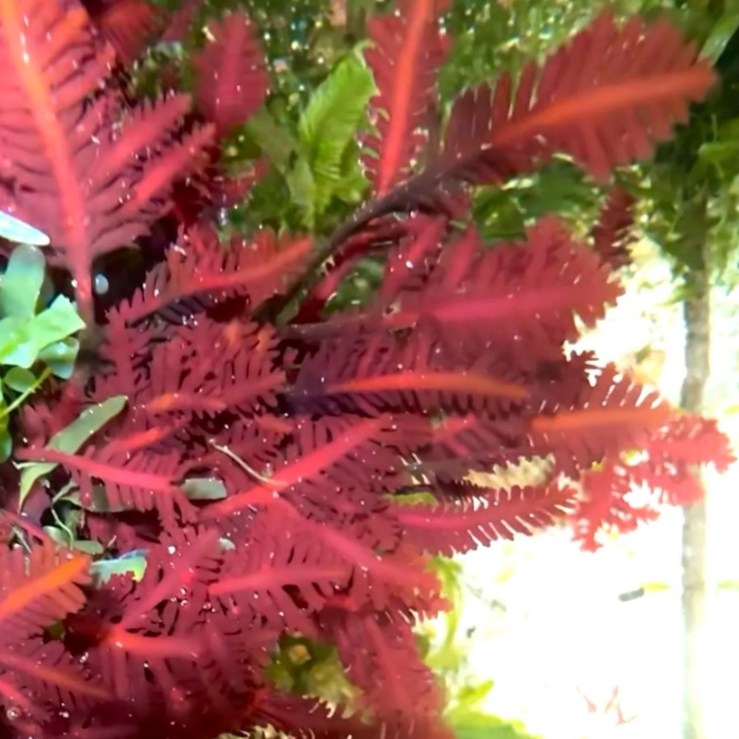 - Striking red colour and branched, fern-like growth habit