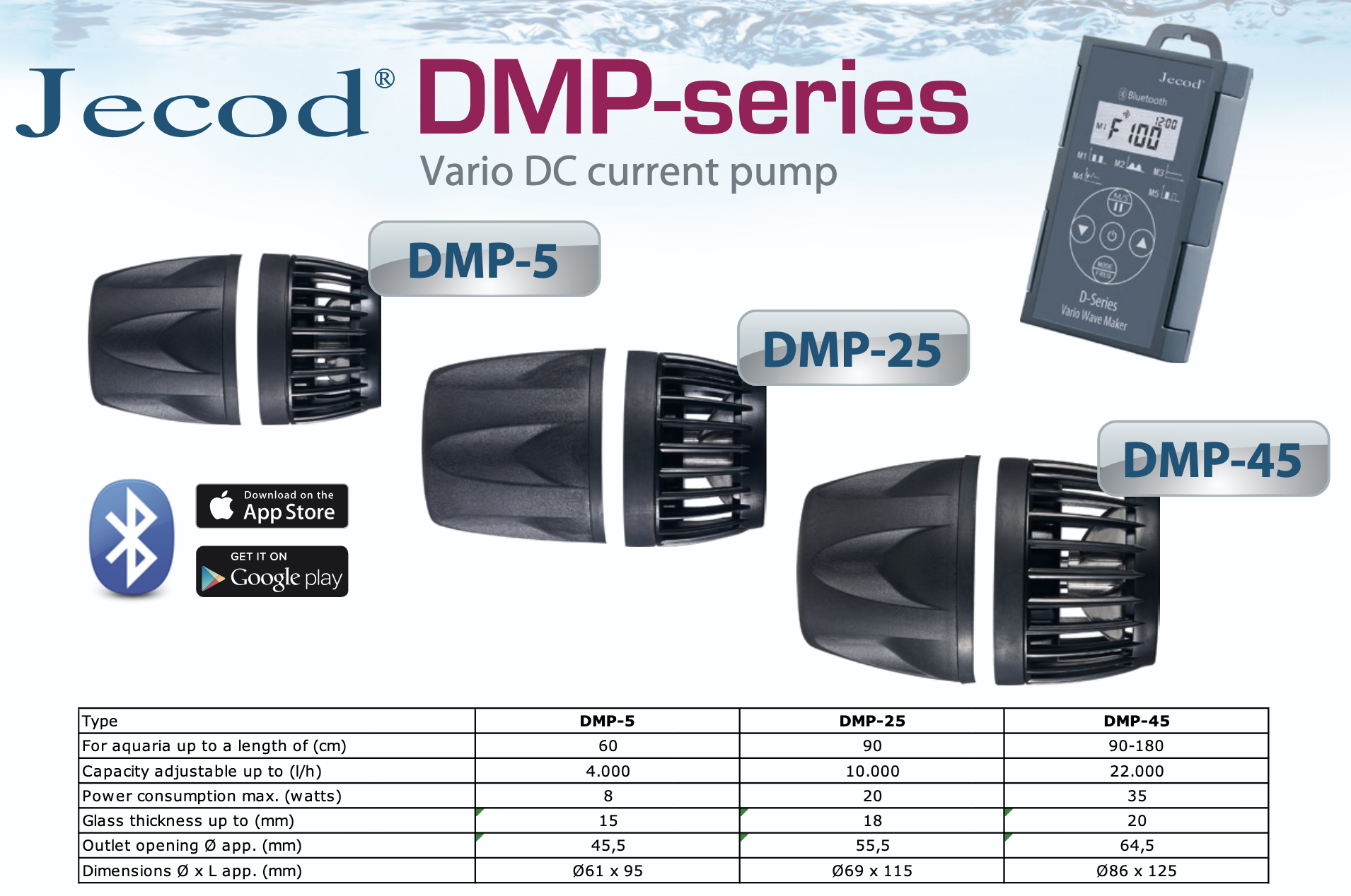 The Jecod / Jebao DMP series is the latest series with the motor outside the aquarium. Even better, the DMP series can be controlled via the app. Upgrade your aquarium with this new DMP Wave Maker! Ver...