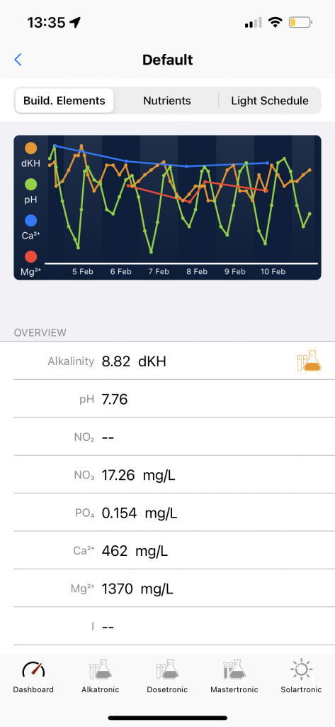 Measurements PO4 / NO3 / Ca / Mg / dKH* / OLI