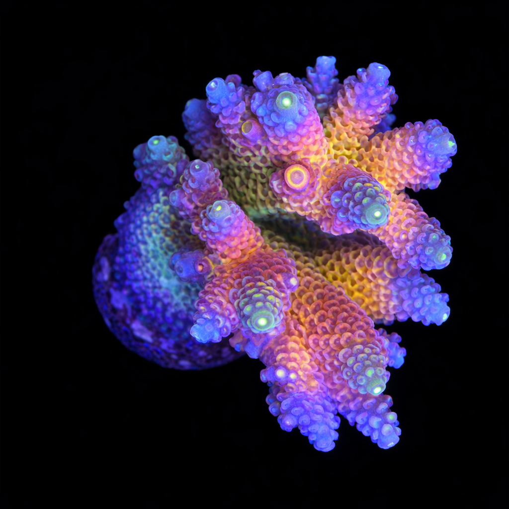 WYSIWYG1757698616003 Unique WYSIWYG Acropora sp. coral. One-of-a-kind, exactly what you see! Are you looking for a real eye-catcher for your reef tank? This unique WYSIWYG coral is an absolute must-have for every serious reefkeeper. No stock photos or surprises – what you see is exactly what you get. And what you get is spectacular.