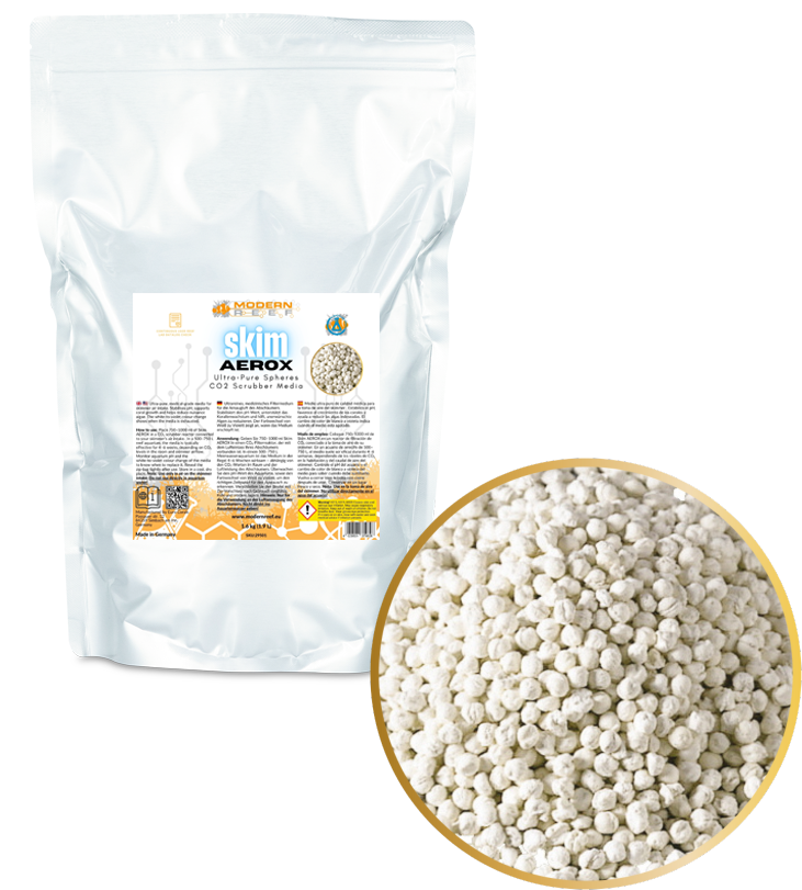 Skim AEROX is manufactured to exacting specifications from Modern Reef. This makes the medium perfectly suited to the conditions of a marine aquarium. While (medical) CO₂ media also exists, these are designed for different applications and are not automatically suitable for use with a protein skimmer.