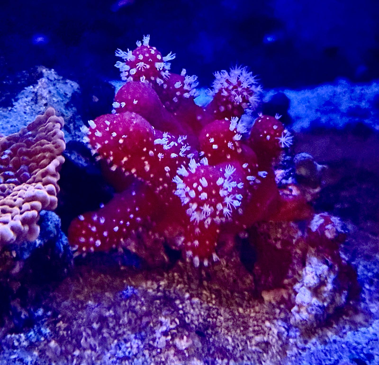 - Colorful Appearance : Available in warm shades like red, pink, or purple, creating a striking contrast with other coral and live rock.