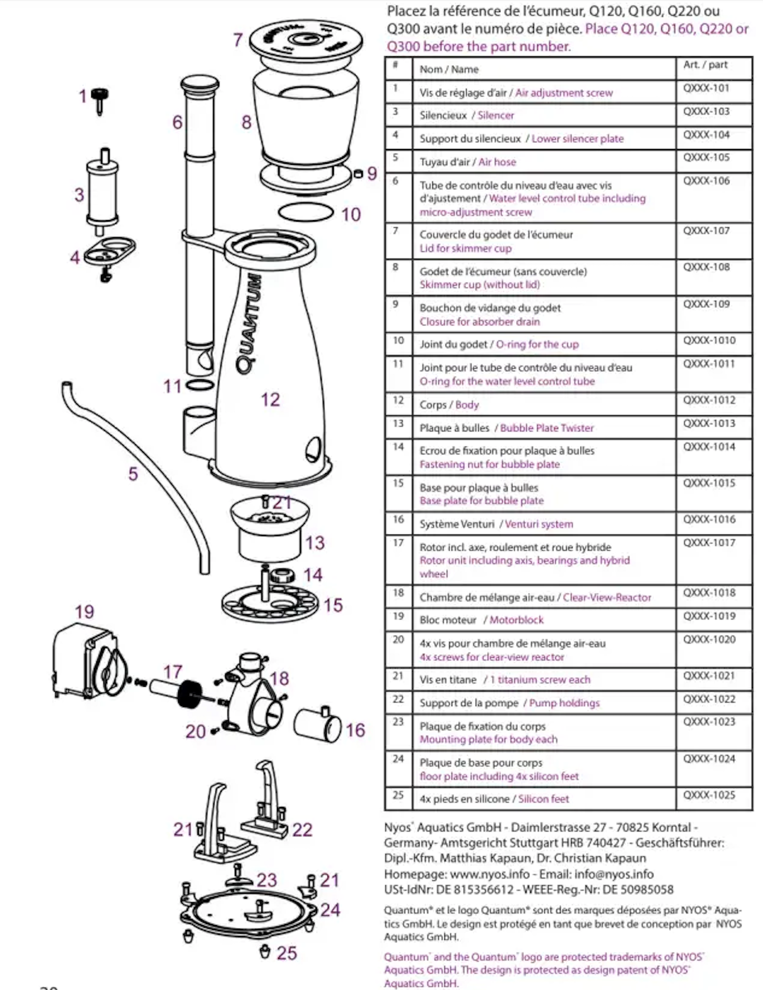 - Switch off the Nyos Quantum skimmer and disconnect it from the aquarium.