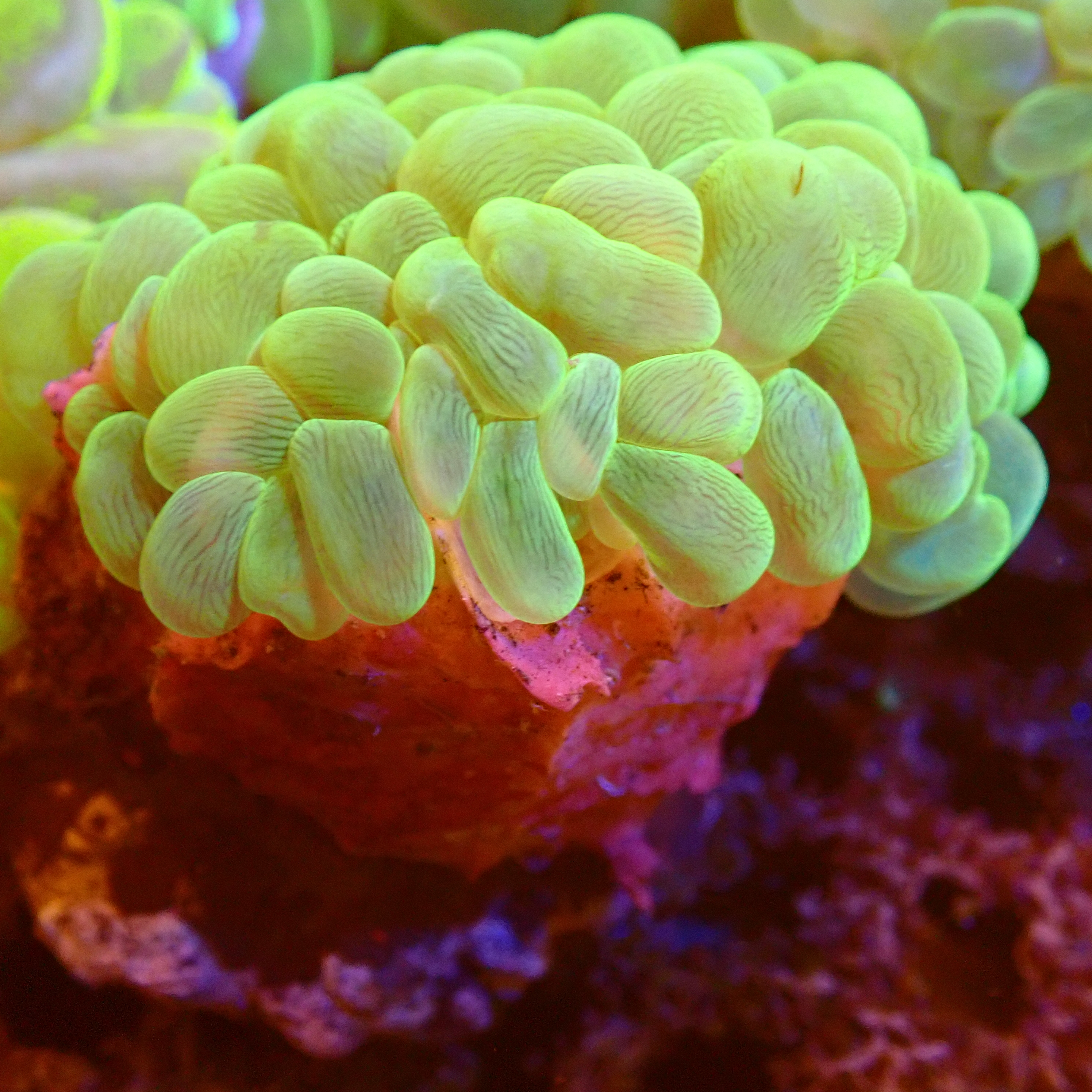 WYSIWYG1754993657079 Unique WYSIWYG Yellow Submarine Favia coral. One-of-a-kind, exactly what you see! Looking for a real eye-catcher for your reef tank? This unique WYSIWYG coral is an absolute must-have for every serious reefkeeper. No stock photos or surprises – what you see is exactly what you get. And what you get is spectacular.