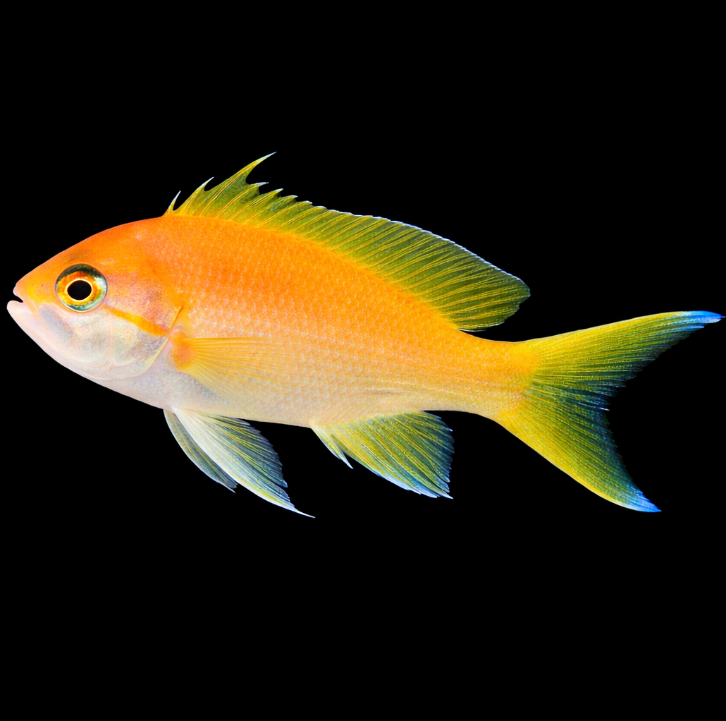 The Pseudanthias pleurotaenia (female), also known as the Squareback Anthias, is a strikingly colored reef fish that fits perfectly into the marine aquarium of the experienced aquarist. This species is known for its social nature, vibrant colors, and active swimming behavior. Female Pseudanthias pleurotaenia are typically orange to reddish-pink with a subtle square spot on the flank, giving them a unique appearance. They feel most at home in groups and bring life and color to the aquarium. With their relatively easy care and peaceful nature, they are suitable for both mixed tanks and reef aquariums. Please note: this species requires sufficient swimming space and a varied diet to thrive.