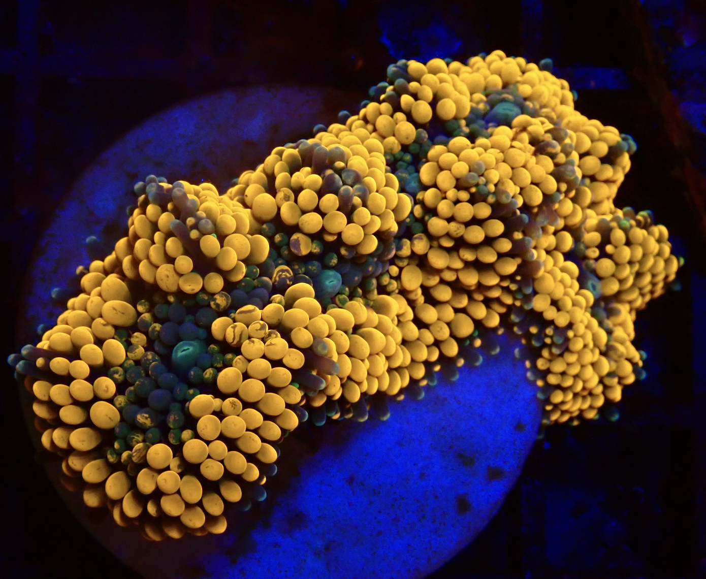 WYSIWYG1754993657079 Unique WYSIWYG Yellow Submarine Favia coral. One-of-a-kind, exactly what you see! Looking for a real eye-catcher for your reef tank? This unique WYSIWYG coral is an absolute must-have for every serious reefkeeper. No stock photos or surprises – what you see is exactly what you get. And what you get is spectacular.