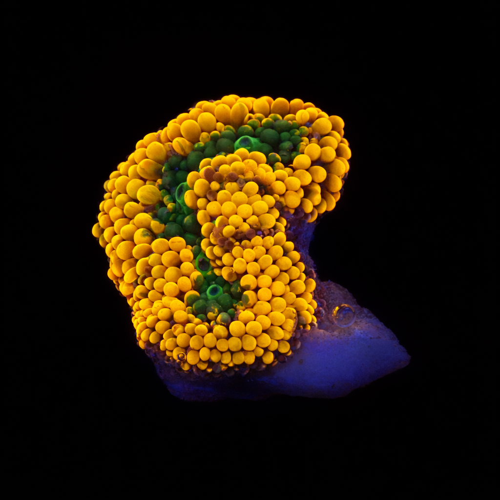 WYSIWYG1754993657079 Unique WYSIWYG Yellow Submarine Favia coral. One-of-a-kind, exactly what you see! Looking for a real eye-catcher for your reef tank? This unique WYSIWYG coral is an absolute must-have for every serious reefkeeper. No stock photos or surprises – what you see is exactly what you get. And what you get is spectacular.