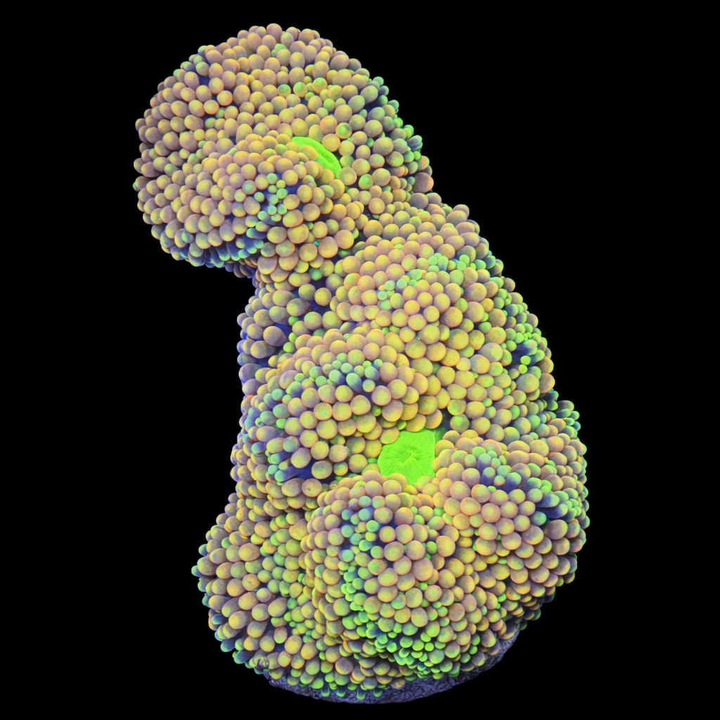 WYSIWYG1757096750662 Unique WYSIWYG Catalaphyllia Jardinei Ultra Green Blue Tips coral. One-of-a-kind, exactly what you see! Looking for a real eye-catcher for your reef tank? This unique WYSIWYG coral is an absolute must-have for every serious reefkeeper. No stock photos or surprises – what you see is exactly what you get. And what you get is spectacular.