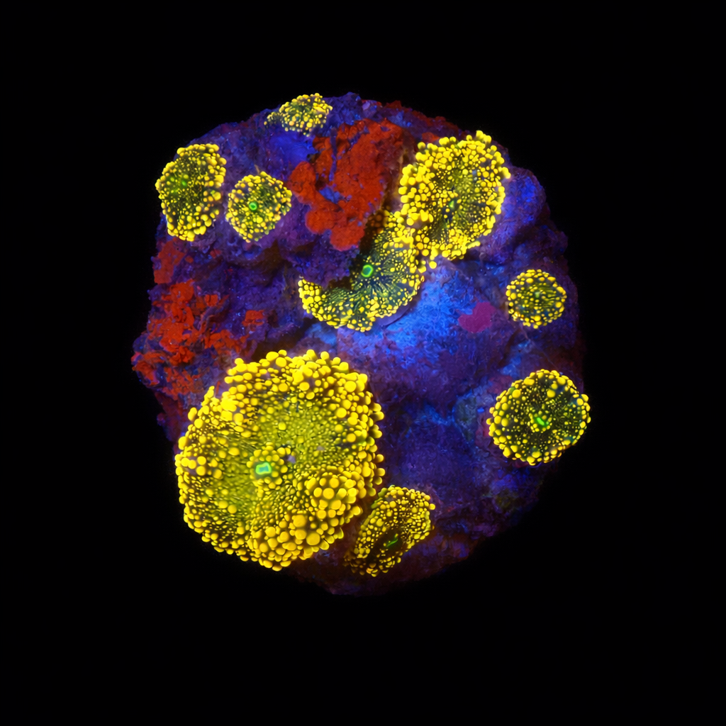 WYSIWYG1769203891416 Unique WYSIWYG Zoanthid Ultra Garden coral. One-of-a-kind, exactly what you see! Looking for a real eye-catcher for your reef tank? This unique WYSIWYG coral is an absolute must-have for every serious reefkeeper. No stock photos or surprises – what you see is exactly what you get. And what you get is spectacular.
