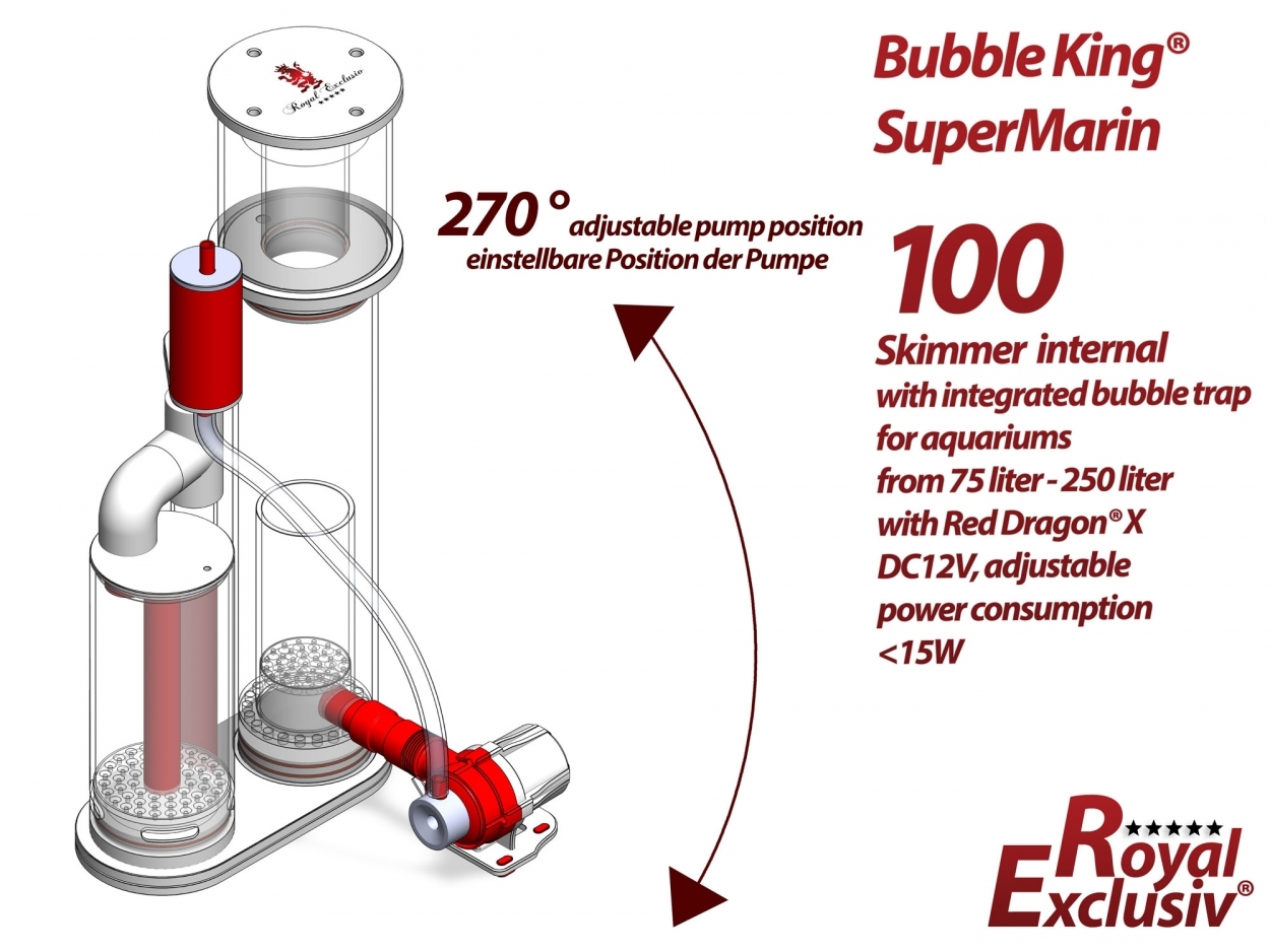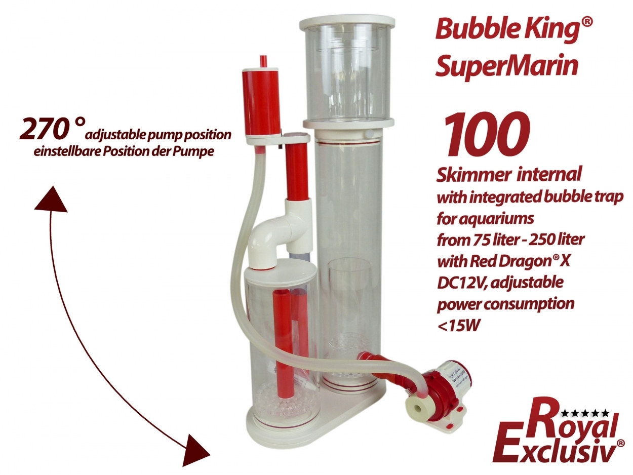 Bubble King® Supermarin 100 RDX with Degassing Chamber – for aquariums from 75 to 250 liters The Bubble King® Supermarin 100 RDX with Degassing Chamber is an advanced internal protein skimmer for marine aquariums...