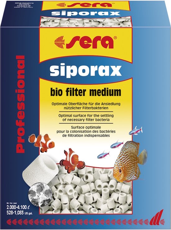 Sera Siporax Professional is the premier high-quality filter medium for marine and freshwater aquariums. Thanks to the unique structure of the Siporax granules, this product offers an enormous biological surface area for beneficial bacteria. As a result, the breakdown of harmful substances such as ammonium, nitrite, and nitrate is significantly improved. Made from specially structured glass, Sera Siporax Professional ensures stable water quality, reduced maintenance, and healthier fish and corals. The medium is suitable for use in both external and internal filters and offers a sustainable solution for every aquarium. Due to the open pore structure, bacteria can establish themselves optimally, meaning even small amounts of Siporax can replace a large filter volume. This makes the product highly efficient and cost-effective. Choose Sera Siporax Professional and enjoy clear, healthy water in your marine aquarium.