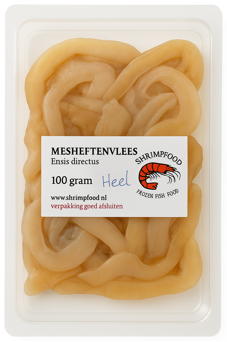 Razor Clam Meat – Shrimpfood | 100 grams / Razor Clam Meat (Ensis directus) Shrimpfood's Razor Clam Meat is of high quality and specially selected for feeding tropical and saltwater fish.