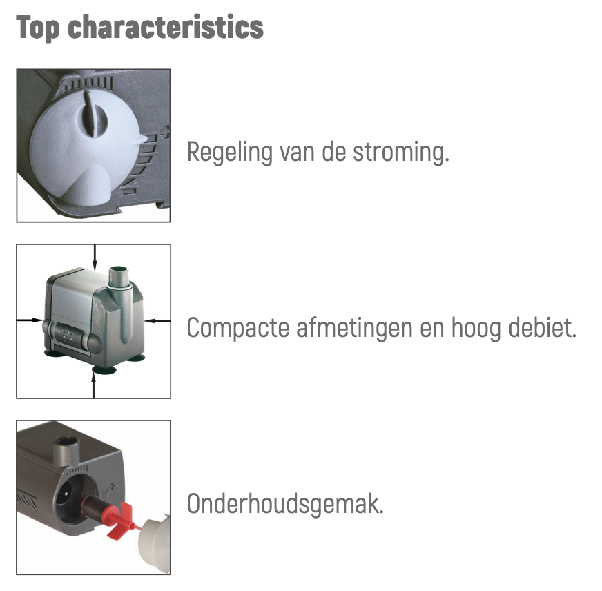 Sicce EASY LINE is a complete series of submersible pumps using synchronous motor technology, which were introduced to the world market many years ago due to their intrinsic characteristics of reliability, good performance, compact and functional design. These pumps are highly reliable for submersion where small dimensions and good head ratio are required. They are suitable for use in aquariums, fountains and wherever water recirculation by submersible pump is required.