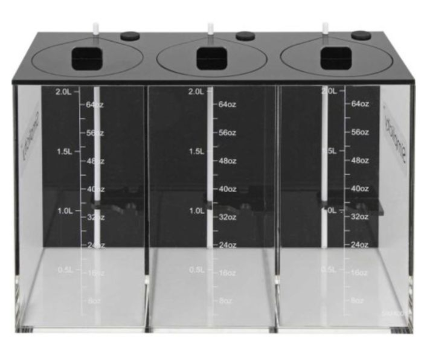 - Three separate reservoirs of 2 liters each