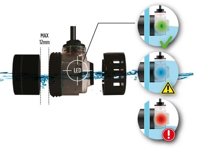 J-03100 New the Smart Level control from Hydor with this it is easy to control a solenoid valve or a pump, the level sensor is held in place by a suction cup combined with a magnet, this provides a very reliable hold. Smart Level is the new handy complete electronic water level controller from Hydor. Smart Level ensures that the water in your aquarium stays safe and easy. It has been developed for many different aquariums, so it can be used in marine and freshwater aquariums. The technology of the Smart Level reduces the water level problems caused by waves or bacteria, which ensures that the Smart Wave always works properly. The Smart Level can be used with all pumps up to a maximum power of 50W. Therefore choose a good type of pump that can be used in combination with the Smart Level.