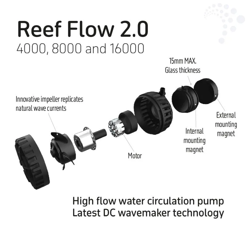 Bring natural, powerful currents to your reef aquarium with the Reef Flow 2.0 4000 12 V DC. This wavemaker is designed for medium to large systems where strong circulation is needed for coral...