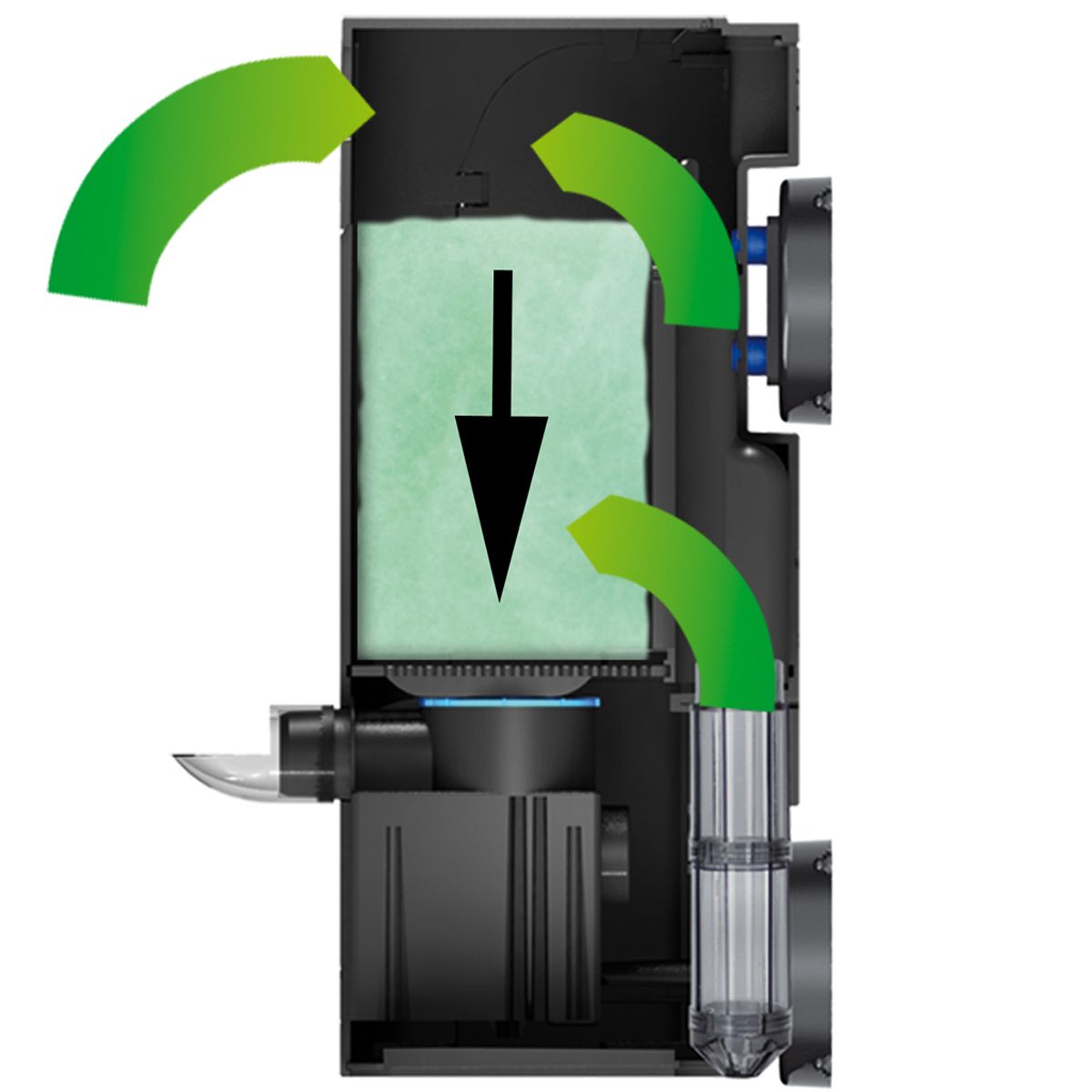 Thanks to its slim design, the filter takes up minimal space in the aquarium. Installation is easy and secure with the included Magnet Holder , suitable for glass thicknesses up to 12 mm .