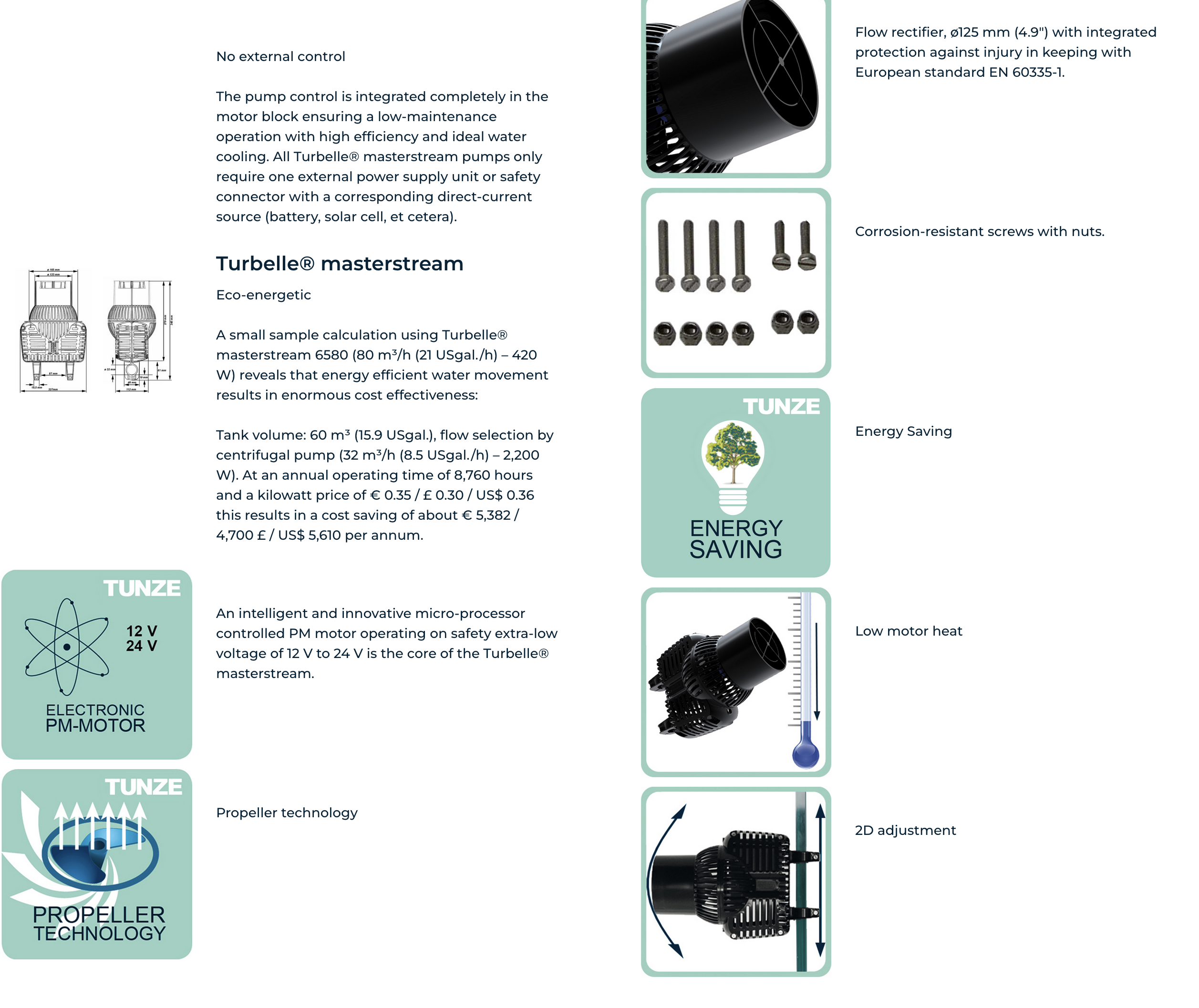Turbelle® masterstream 6550 – extreme flow for very large aquariums The Turbelle® masterstream 6550 is a powerful high-performance propeller pump, developed for applications where maximum flow is required.