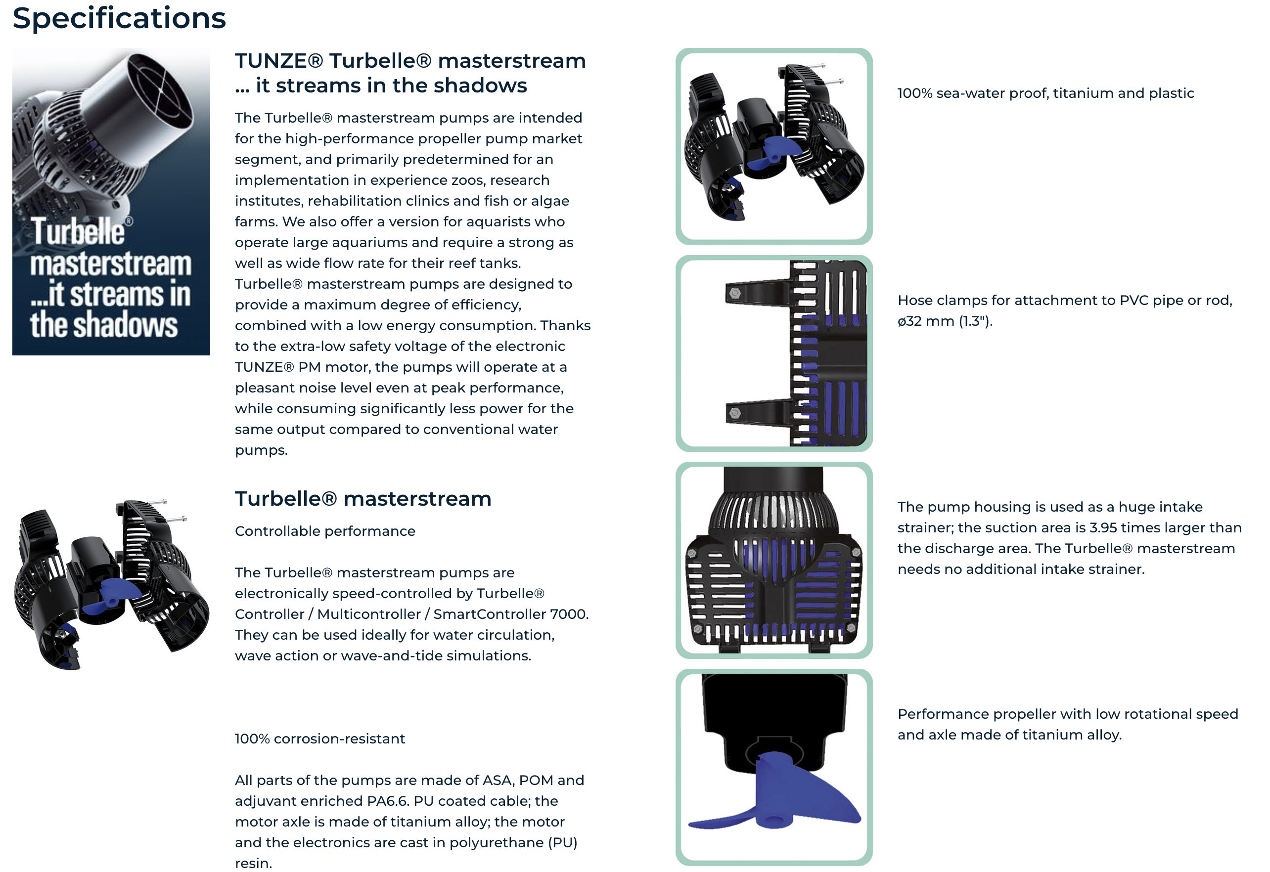 Turbelle® masterstream 6580 – maximum flow for extremely large aquariums The Turbelle® masterstream 6580 is an extremely powerful high-performance propeller pump, designed for applications where exceptionally large aquariums are required.