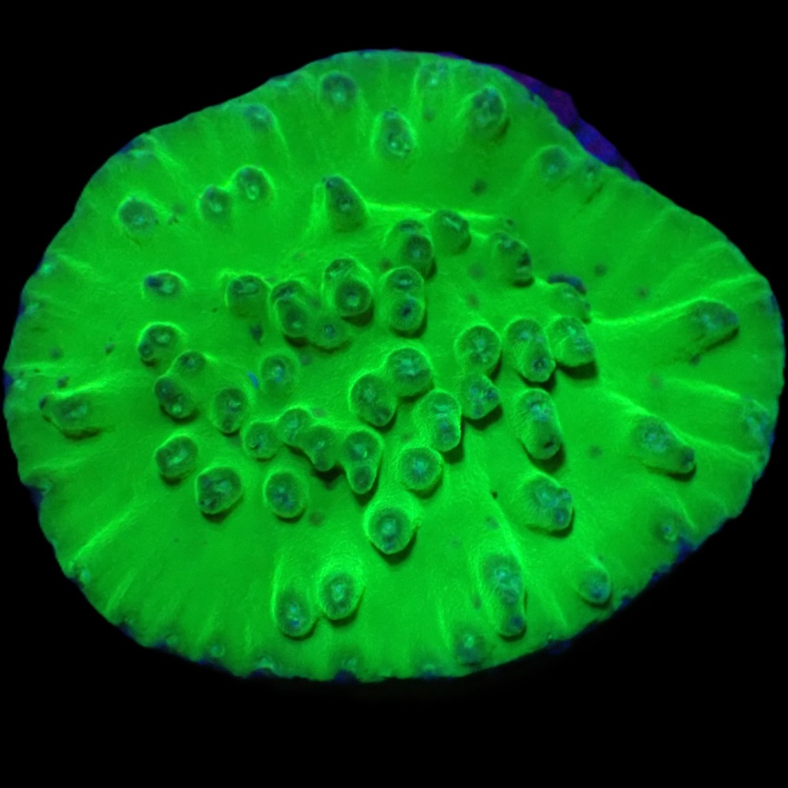 The Turbinaria Ultra Green is a beautiful and unique coral species that, with its vibrant green color and striking structure, is a real eye-catcher in any marine aquarium. This coral is known for its robust growth and relatively easy care, making it suitable for both novice and experienced hobbyists.