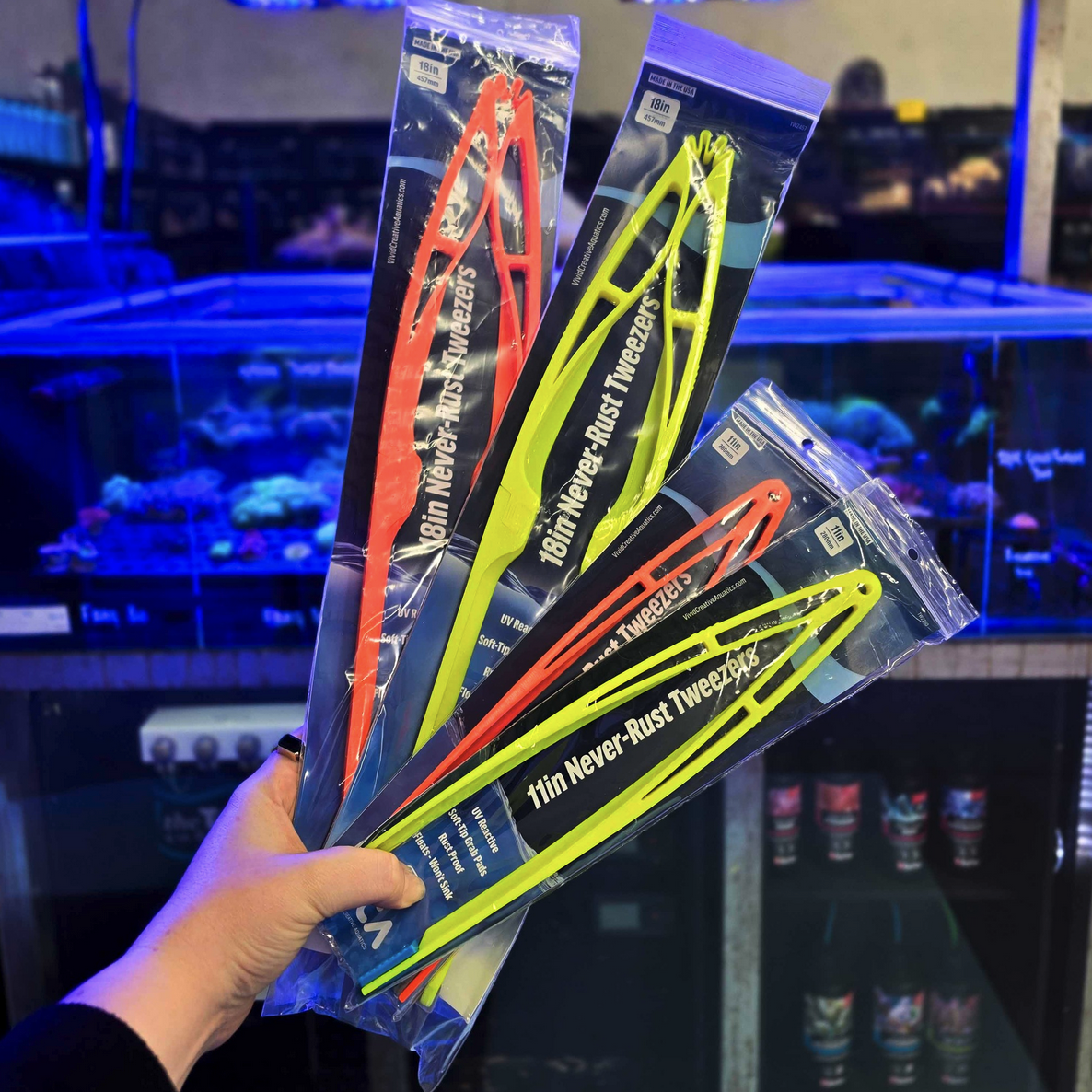 - Striking colouring (e.g. UV-reactive yellow or sunset orange) makes the tweezers highly visible under actinic light and easy to find in the aquarium.
