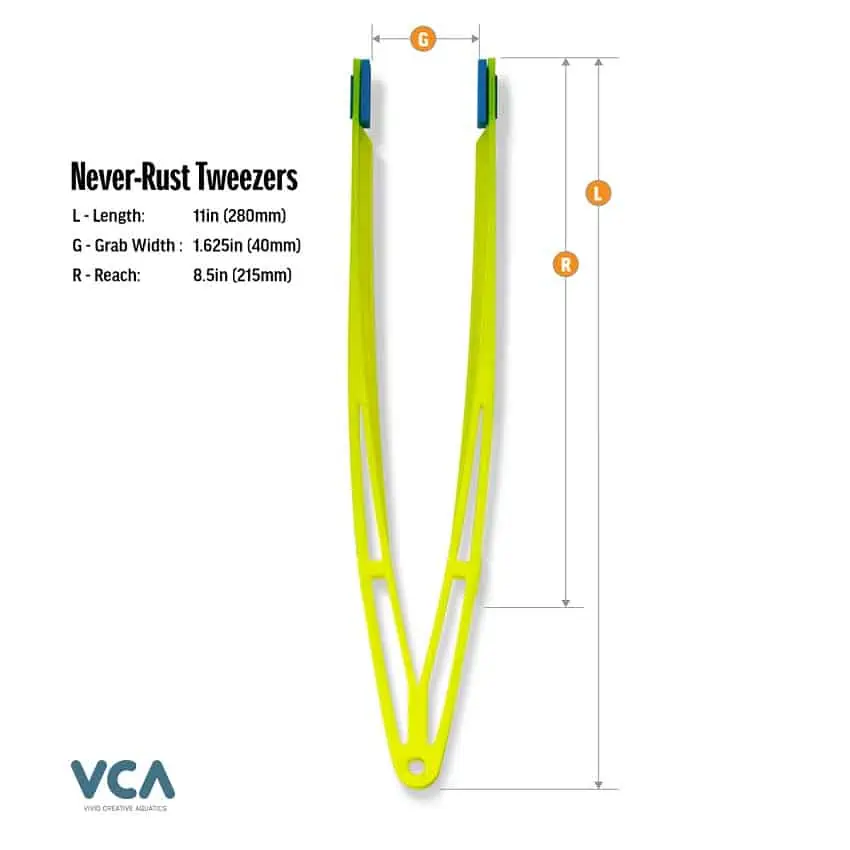 The VCA Never-Rust Tweezers are a premium tool designed for use in both freshwater and saltwater aquariums. Thanks to their all-plastic design and removable soft-grip tips, these tools are completely rust-free, durable, and ideal for precision work.