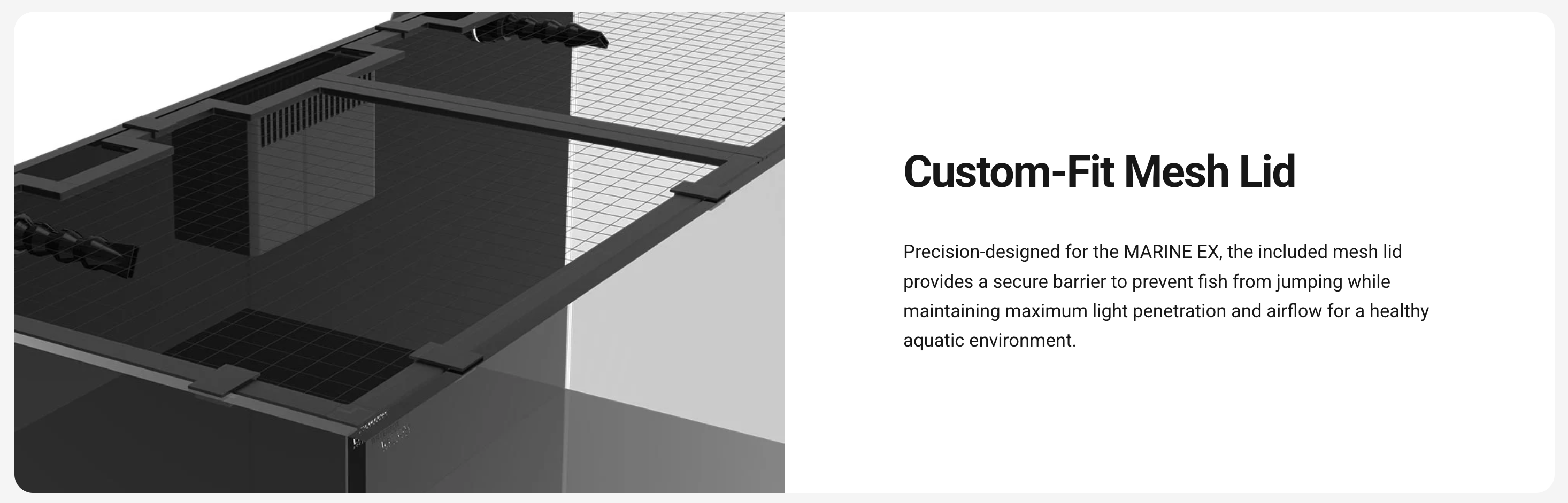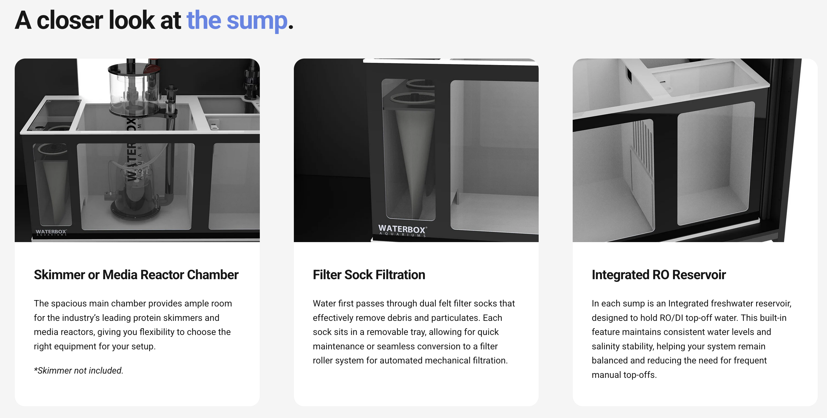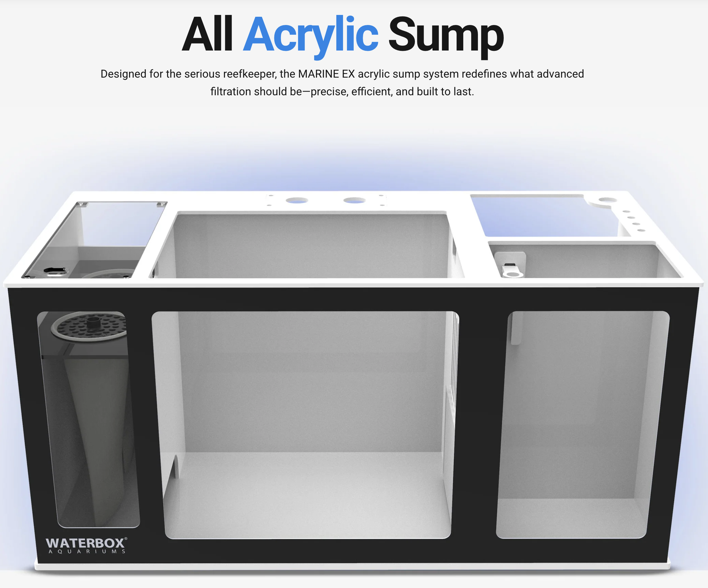 The WaterBox MARINE EX series is specifically designed for reef enthusiasts seeking top quality, flexibility, and ease of use. Thanks to the spacious sump system and silent overflow, the system is easily integrated with skimmers, reactors, and other technology.